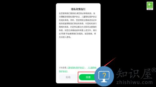 1、在隐私政策弹窗中点击红色箭头指向的绿色同意按钮。