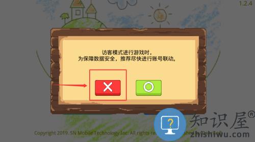 2、在弹窗中点击红色箭头指向的叉号按钮,暂时跳过账号绑定。