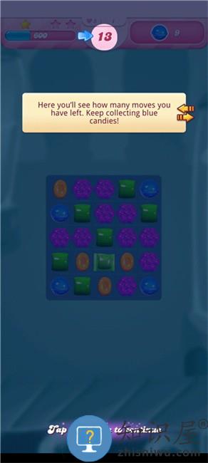 4、可以看到右上角是你本关需要完成的任务,收集一定数量的蓝色糖果通关;