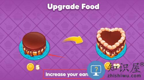 1、选择右侧高级蛋糕支付10金币,提升食物等级增加收益。