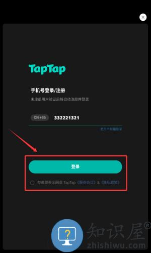 3、输入手机号后点击红框登录按钮,完成账号注册流程。