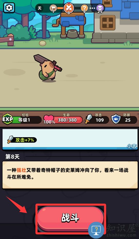 游戏的战斗场景,则是一个类似于自走棋的回合制形式,随机的出招类型和随机的伤害,当然伤害的主要范围还是根据人物的攻击力和防御力来判定,角色的属性又来源于多个方面。首先就是人物等级,通过冒险历程获得经验提升等级后,卡皮巴拉的属性也会有相应的提升。