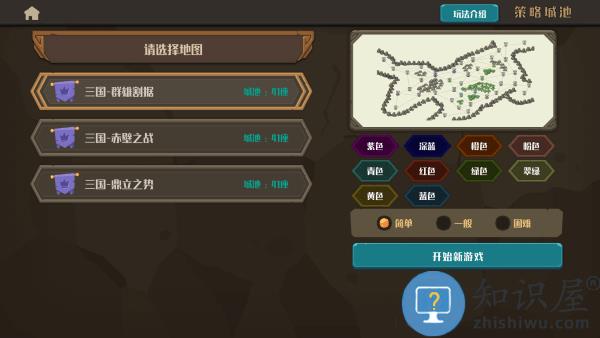 游戏提供多幅地图可供选择,地图上分布城池和路线,路线相连的城池可以相互移动、攻击。