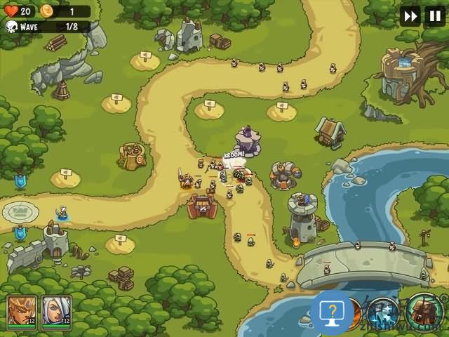 4个英雄,前两个免费,后两个钻买,很贵,没破解钻,和皇家守卫一样,箭,兵,魔,石4种塔,画面挺好,声效很单调,有加速功能,图较小,关少,难度值得玩。