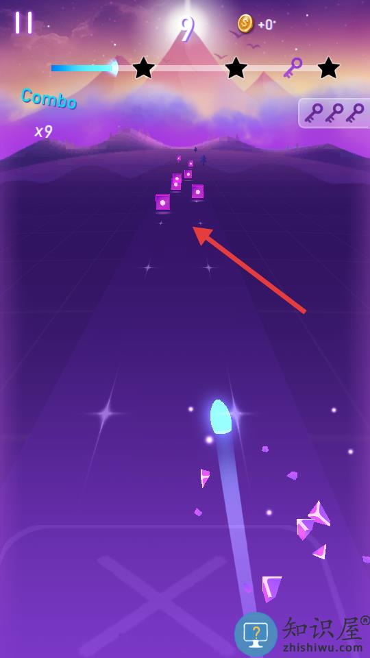 1、滑动手指调整枪口方向击碎随节奏飞来的瓷砖。