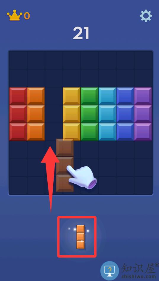 4、再把这个正方形的积木移动到中间哪里就可以消灭了。