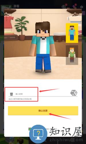 2、在角色创建界面输入自定义称号,点击黄色确认创建按钮。