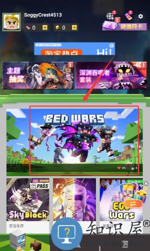 3、在主界面游戏列表中,选择红色方框标注的床战游戏开始游玩。