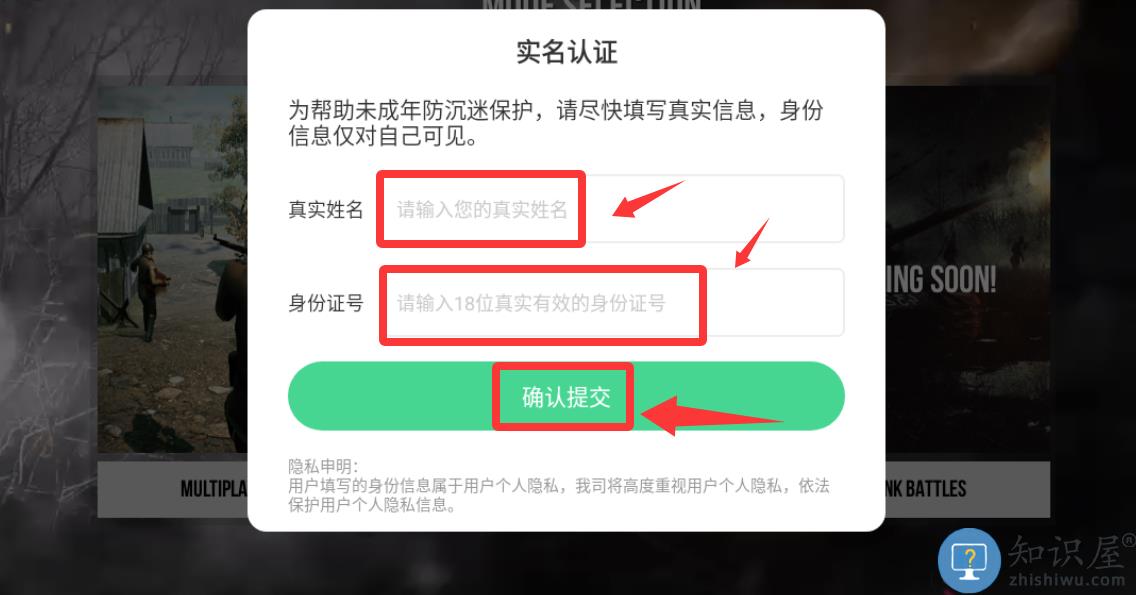 2、输入真实姓名和身份证号码并确认提交。
