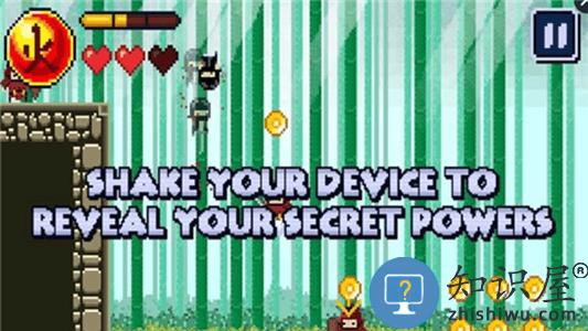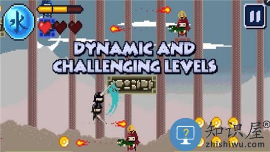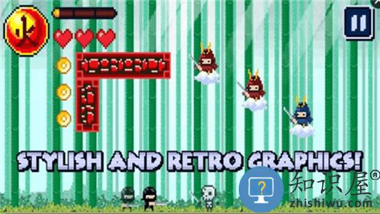 1、游戏采用了复古的像素画风,操作忍者在像素世界里冒险;