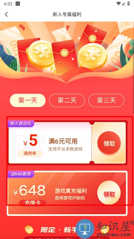 首次打开app,如果您是新用户,可以领取超值大礼包,点击立即领取;
