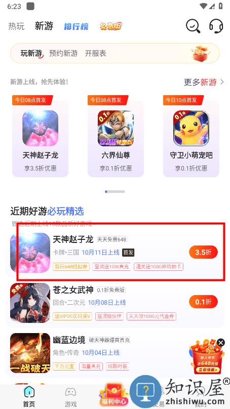 点击您要玩的游戏,如天神赵子龙;