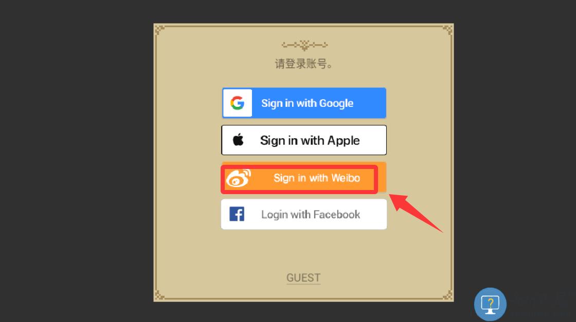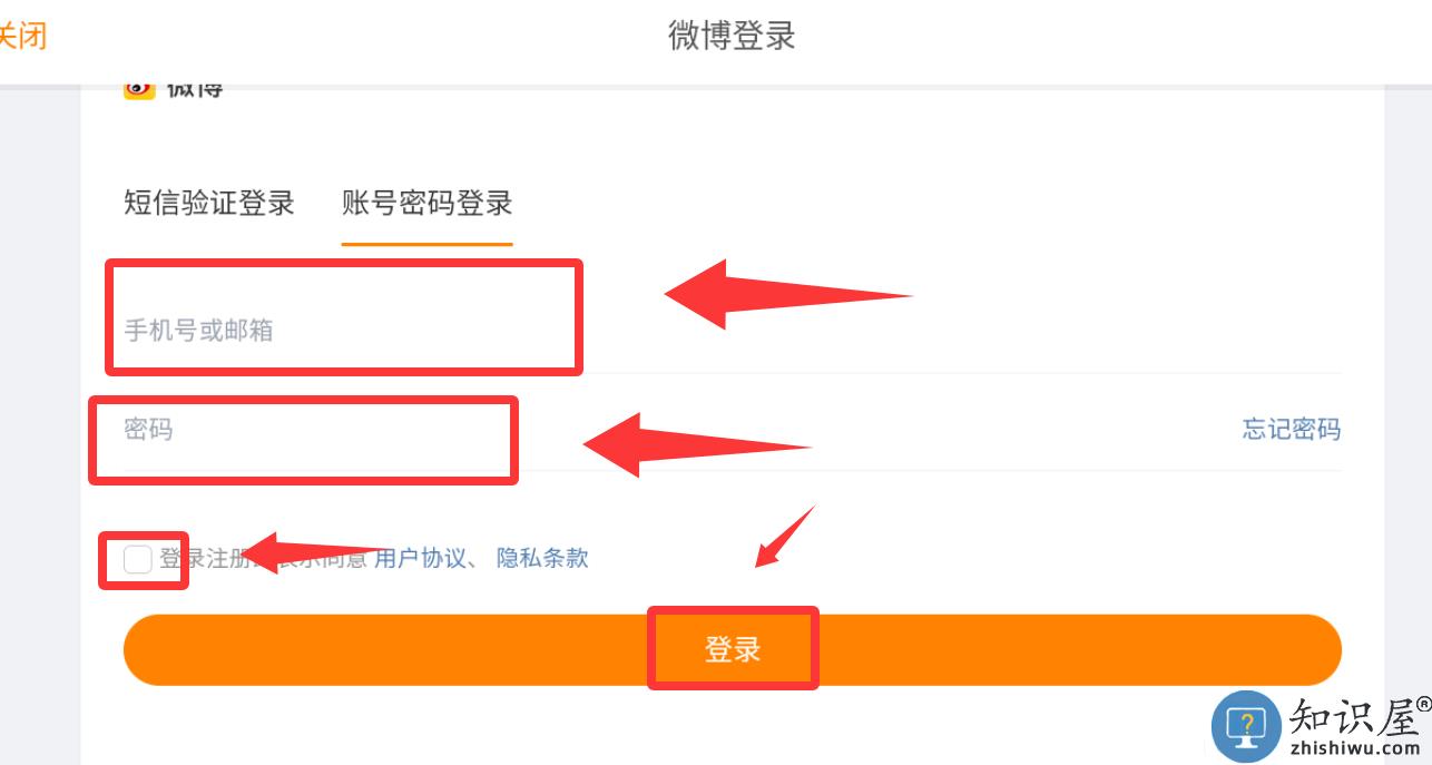 2、点击红色框框里的微博账号登录。