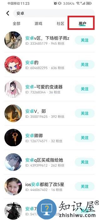 点击搜索,点击用户即可看到好友并可以关注啦~