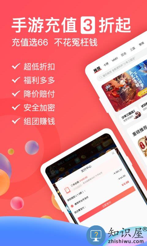 66游戏中心是手游充值自动打折返利、免费领取手游礼包的充值平台,广大玩家朋友们在游戏充值消费时只需支付折扣后的金额,轻松享受充值折扣减免和返利优惠,自动打折、任意金额打折、即充即享折扣功能现均已上线,游戏玩家在平台充值时即刻享受各种手游充值福利!提供新游开服表信息、手游礼包免费领取、账号回收、账号交易、手游加速器、手游免费首充号、兑换券、有奖折扣举报、终身价格保护、有奖下载试玩和其他用户福利。在这里,卡牌游戏、角色扮演、动作冒险、经营策略、赛车竞技、武侠魔兽、休闲益智、模拟养成、体育竞技、网络游戏、搞笑动漫等热门手游一应俱全。平台现已经和少年三国志、航海王启航、口袋妖怪复刻、传奇来了、全民奇迹、天使纪元、口袋妖怪新世代、女神联盟2、弹弹岛2、问道等精品手游深度合作,充值极速到账,折扣低到不敢信!