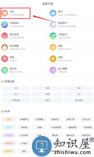 2、在全部分类中选择红框标注的古风分类开始浏览。