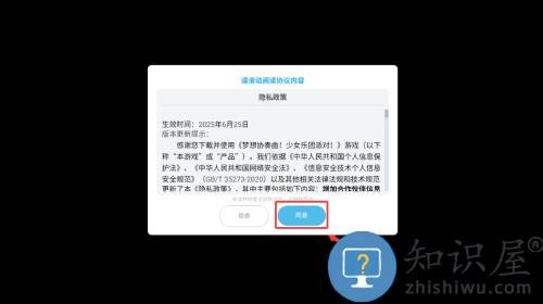 1、阅读隐私政策后,点击红框标注的蓝色同意按钮继续。