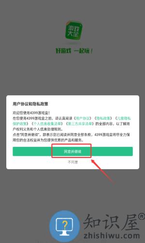 1、阅读用户协议后,点击红框标注的绿色同意并继续按钮。