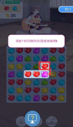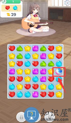 1、点击红色框框里的小爱心往下移进行3消。