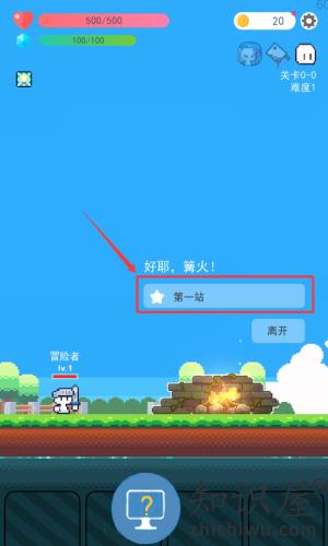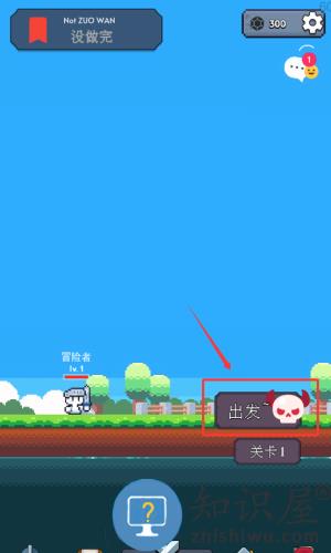 1、点击红框标注的出发按钮,选择冒险者开始关卡1。