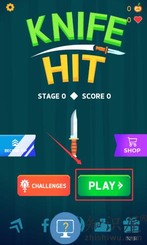 3、按照红框提示将小刀投向苹果,完成第一关挑战。