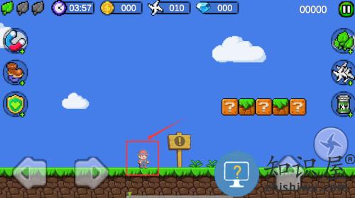 3、使用红框箭头指向的圆形摇杆控制角色移动探索。