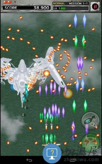 新增军火商店,为你的进攻全副武装,包括配备第七级子弹及附加武器的超强战机、配备追踪导弹的辅助机、超级子弹、无敌保护罩、自动补油等等;