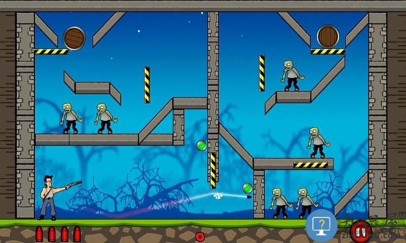 所以你必须要开动脑筋了,你需要利用子弹的反弹来消灭大部分的僵尸