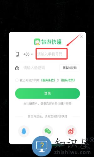 2、输入手机号码,准备获取验证码登录。