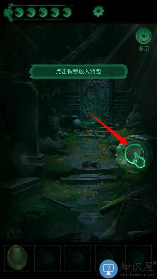经过一段剧情后,点击地面上的铜镜拾取。