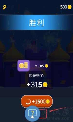 1、点击红框标注的橙色+1500按钮,双倍领取胜利金币奖励。