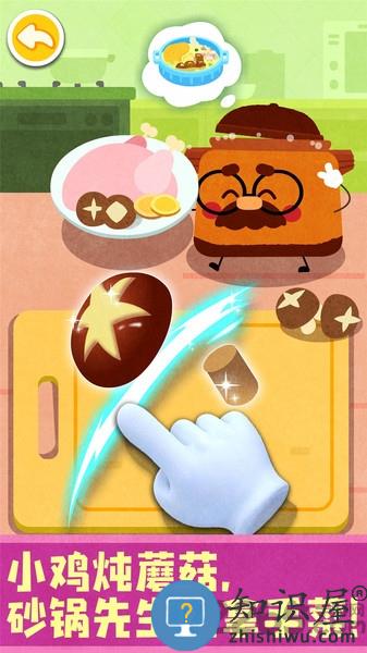 第二位选手是谁?有请砂锅。瞧,它已经装好水,将烹饪小鸡炖蘑菇。2265小鸡扑通跳进了砂锅。宝宝来为蘑菇DIY造型吧,处理好,砂锅要烹饪美食咯!(荤素均衡,健康饮食)