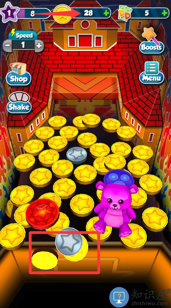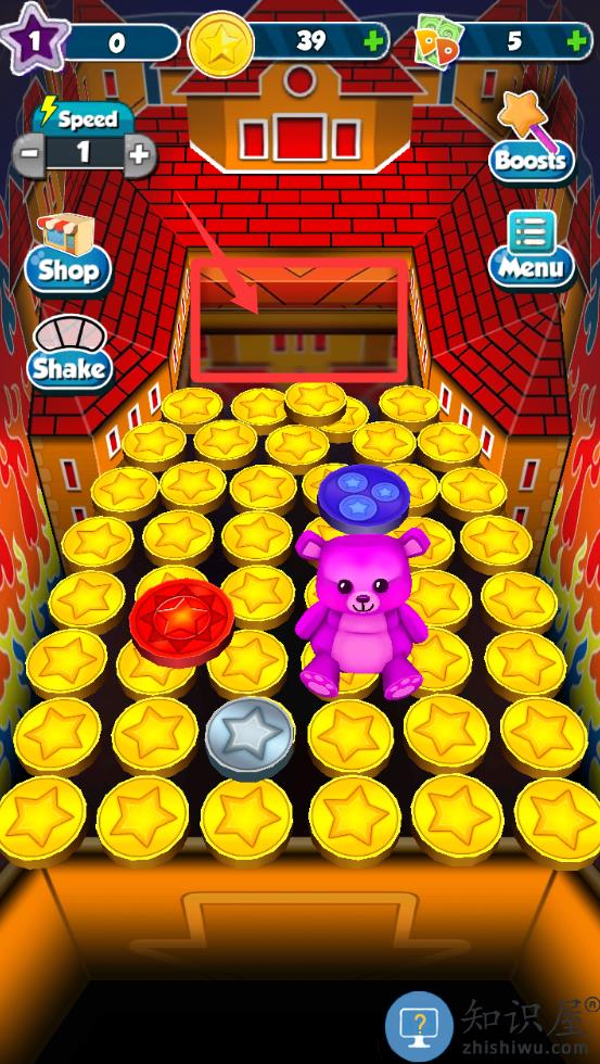 1、进入游戏点击红色框框里的区域就可以掉下金币。