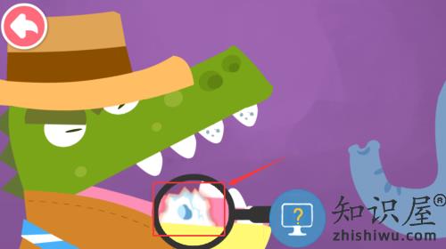 3、根据红框箭头提示,用放大镜检查鳄鱼牙齿。