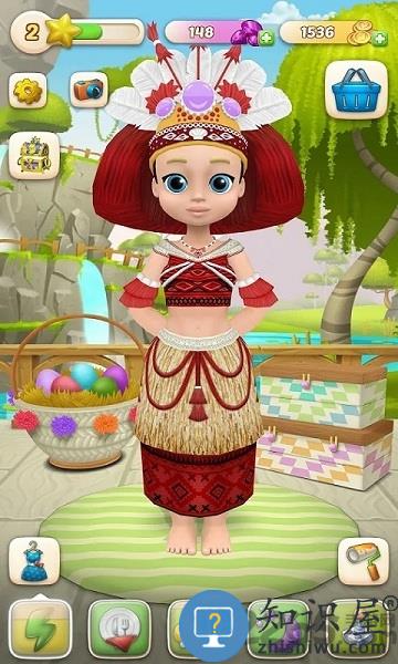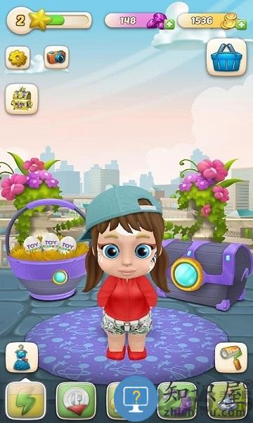 为她装扮、洗澡、刷牙等。通过30个关卡,解锁精美的服装、更改室内装饰等。