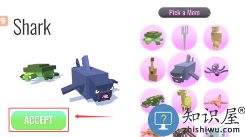 2、点击红框标注的ACCEPT按钮,确认选择鲨鱼角色。