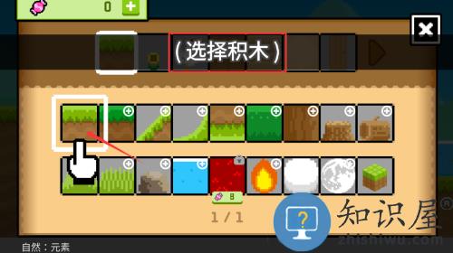 1、点击红框标注的草地积木,从菜单中选择自然元素。