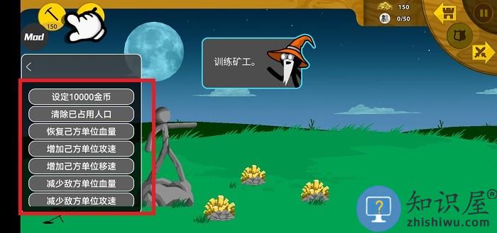 第7关:解放皮特大陆,对面是剑士和弓箭手的组合,八个矿工全力发展经济,先养两排剑士,后期可以开始养巫师(可以试着操控剑士优先解决弓箭手)