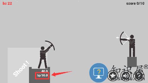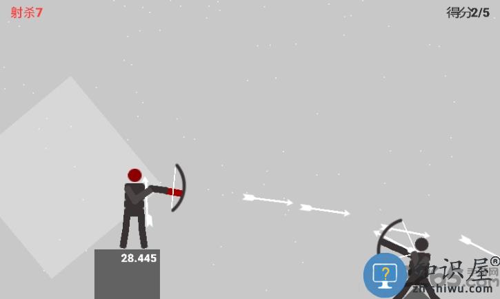 3.射中地方火柴人的不同部位有不同反应,点击游戏画面,控制火柴人射箭的方向。