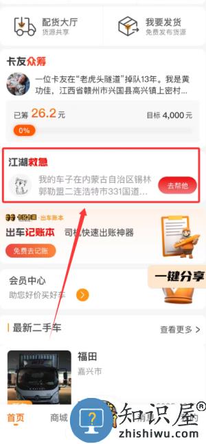 1、首页设有紧急求助板块,为卡友提供行车途中突发问题的支援服务。