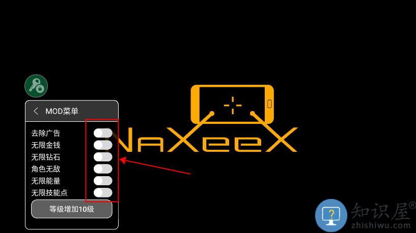 2、完成实名认证之后,进入游戏,左侧有绿色钥匙或FF图标,点击开启,即可进入mod菜单,勾选您想要的,即可破解对应。