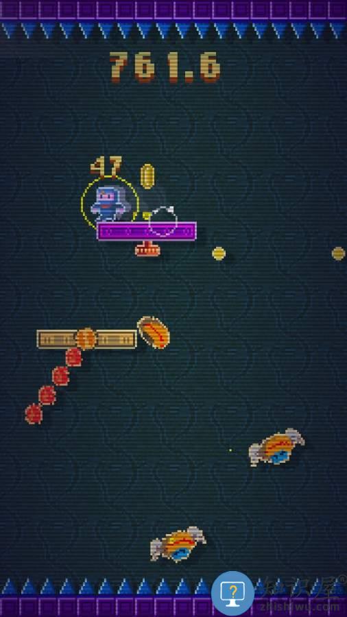 1、通过点击屏幕左右两侧控制角色移动跳跃于平台之间。