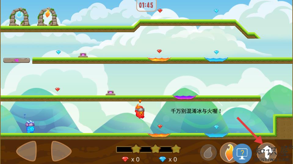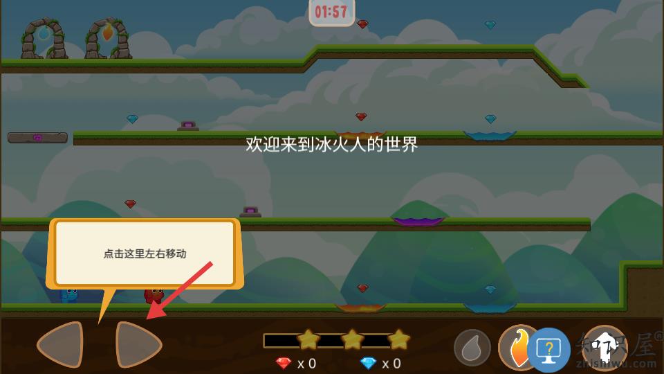 游戏中,会有很多困难需要克服,而随着关卡的增加,难度也会随着增加,你需要想办法将这些关卡尽力通关,才有可能帮助它们,并且你需要分别控制冰娃和火娃,吃到钻石,找到对应的大门,即可过关。注意,冰娃不能碰到火,火娃不能碰到水,冰娃和火娃都不能碰到毒气。冰火人冒险之旅马上开始,你准备好了吗?赶快开动你的大脑帮助冰火人吧!