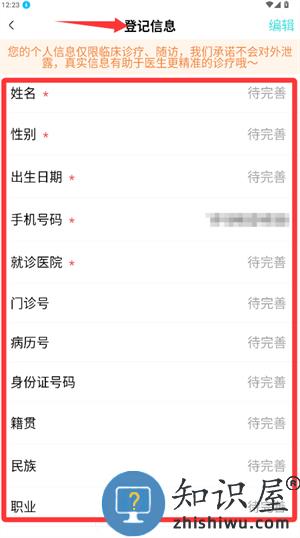 3、进入信息页补充姓名、性别等个人所需就诊资料。