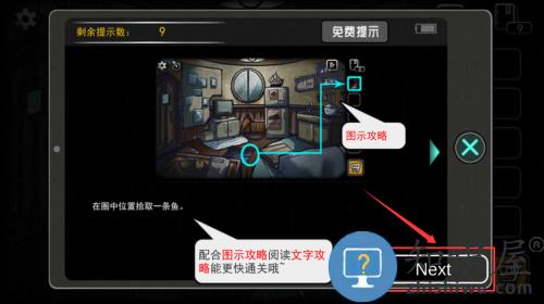 2、点击红框标注的Next按钮,查看游戏提示和笔记功能。