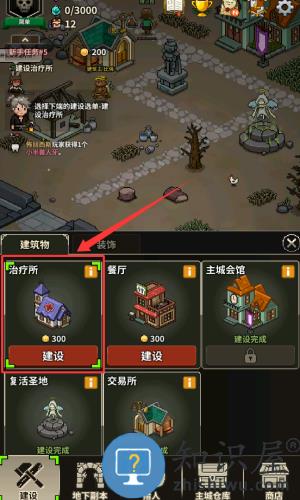 1、点击红框标注的建设按钮,选择治疗所开始建造。
