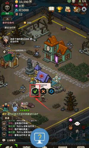 3、查看村民对话反馈,点击红框设置按钮确认建筑。