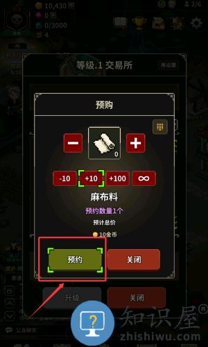 2、调整数量后点击红框预约按钮,花费10金币完成下单。