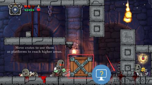 游戏的操作与大部分的横版冒险类游戏相似,左下角的虚拟按键控制角色的左右移动,右下角的两个虚拟按键则分别是跳跃和攻击;