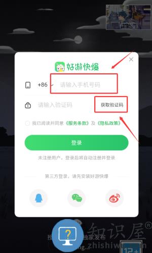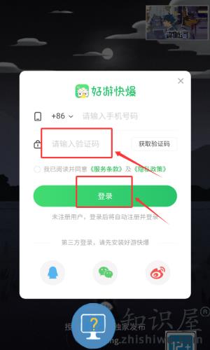 2、输入手机号后,点击红框箭头指向的获取验证码按钮。